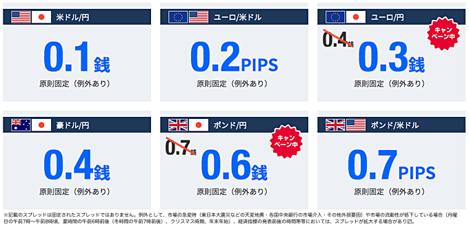 上記の画像からわかるように「日本史上最狭スプレットへ」というスローガンを打ち出しており、このスプレッドの狭さは他社には真似できない強みとして前面に打ち出しています。