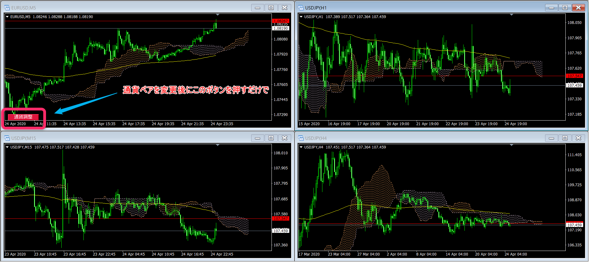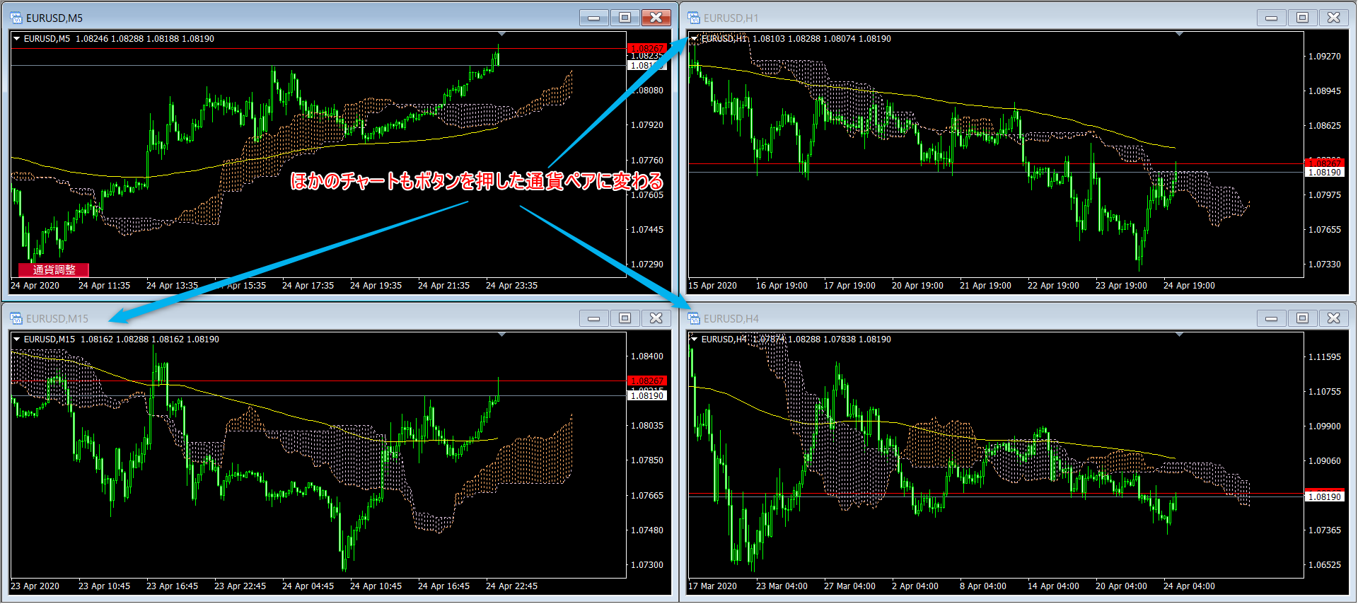 4つのチャートをユーロドルに変更しなくてはいけないのですが